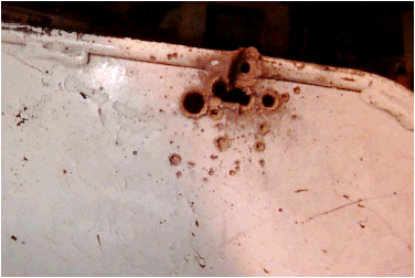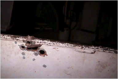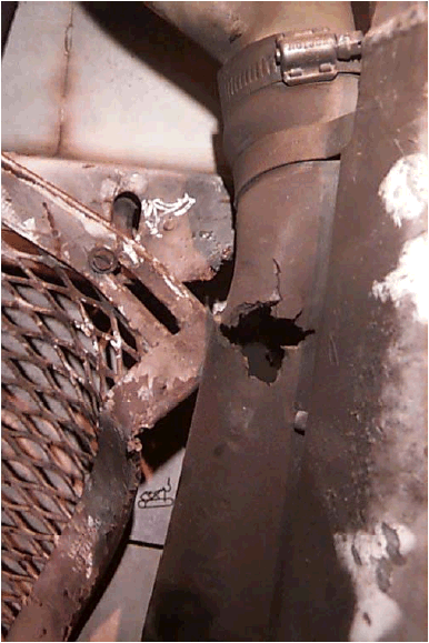 5. Schlauch durchlöchert und Blech verbogen |