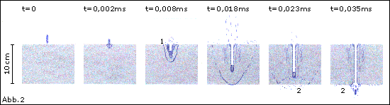 Nachdem ich in einer anderen Fotoserie Bild 4 als Ersteinschlag angenommen hatte, sah dies eindeutig aus wie ein Präzisionsschuss von einem Kanonenheckenschützen. Abbildung 1 Erster Entwurf für Geschoss mit Lawinendynamik, für größere Durchmesser. Mit 20kg kann man dann von einem Tretboot aus einen Flugzeugträger abschiessen, na endlich. Abb.2 Andeutung Computersimulation des Einschlags |